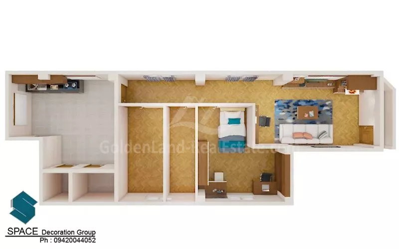 • ၂ ယောက်ခန်း (၁) ခန်း (နံရံကပ်ဗီဒို အပါ)